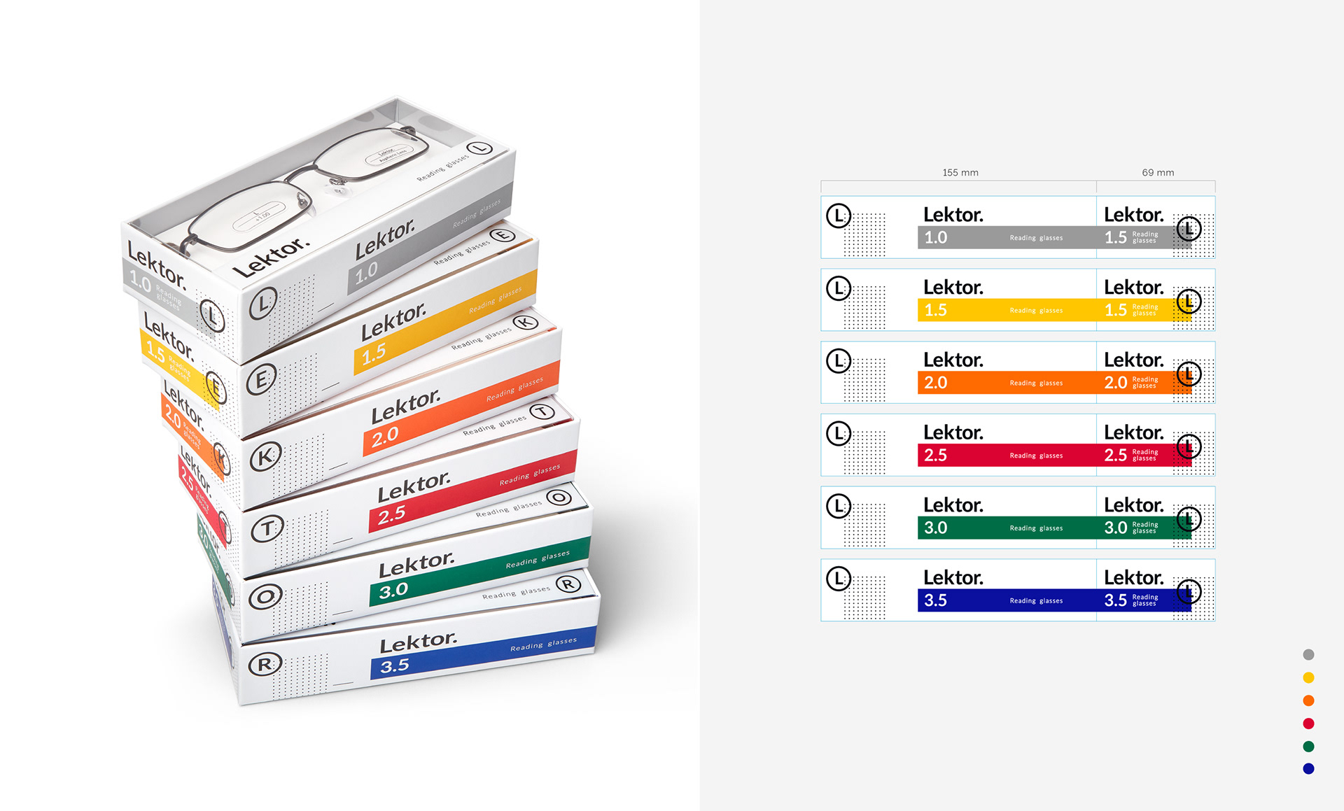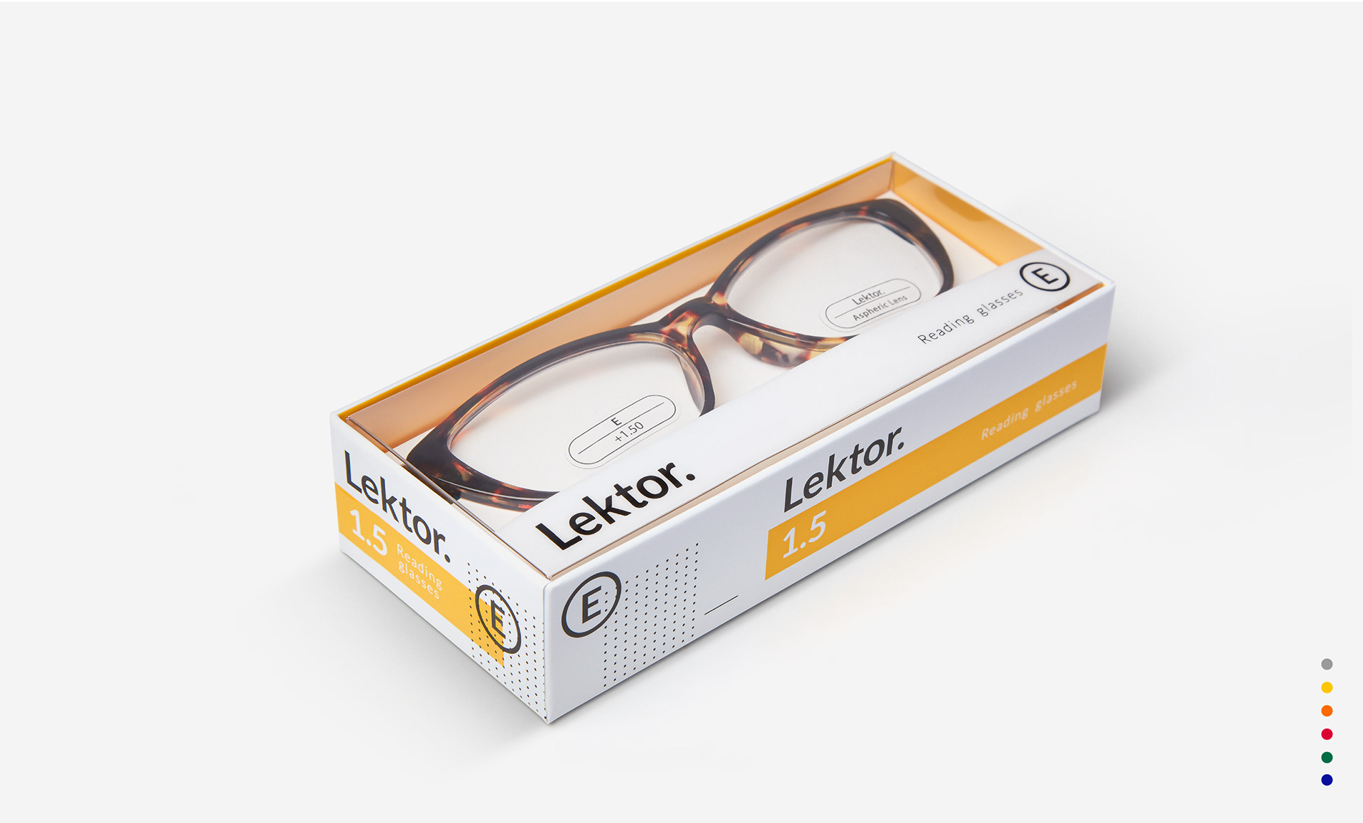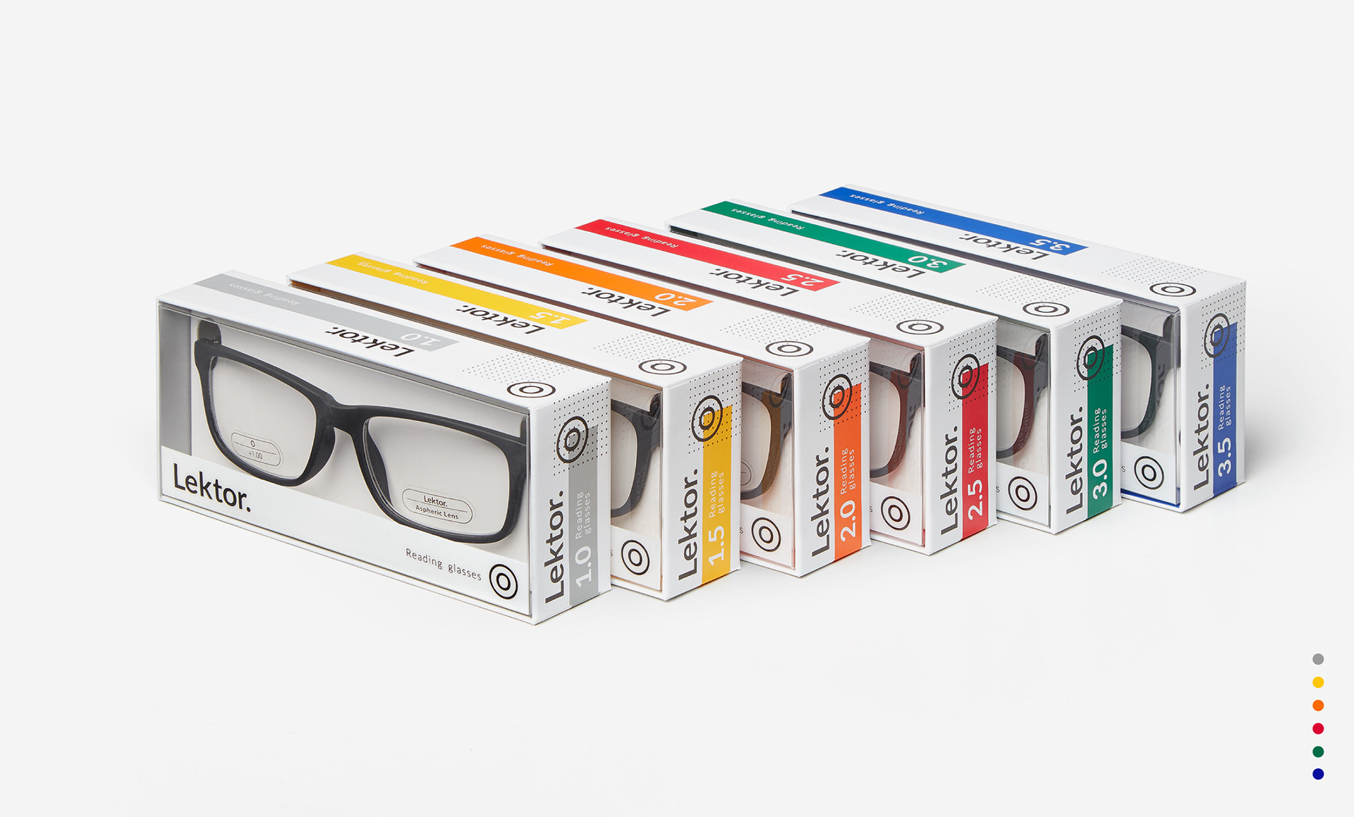 Branding & packaging design for Lektor, reading glasses designed for professionals.