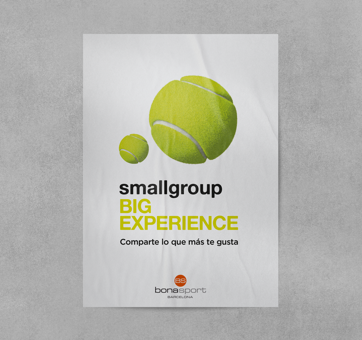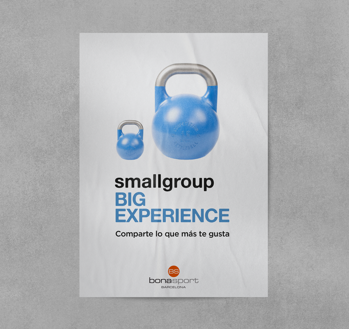 Poster collection for a new modality of reduced classes in Bonasport club, under the claim Smallgroup, big experience