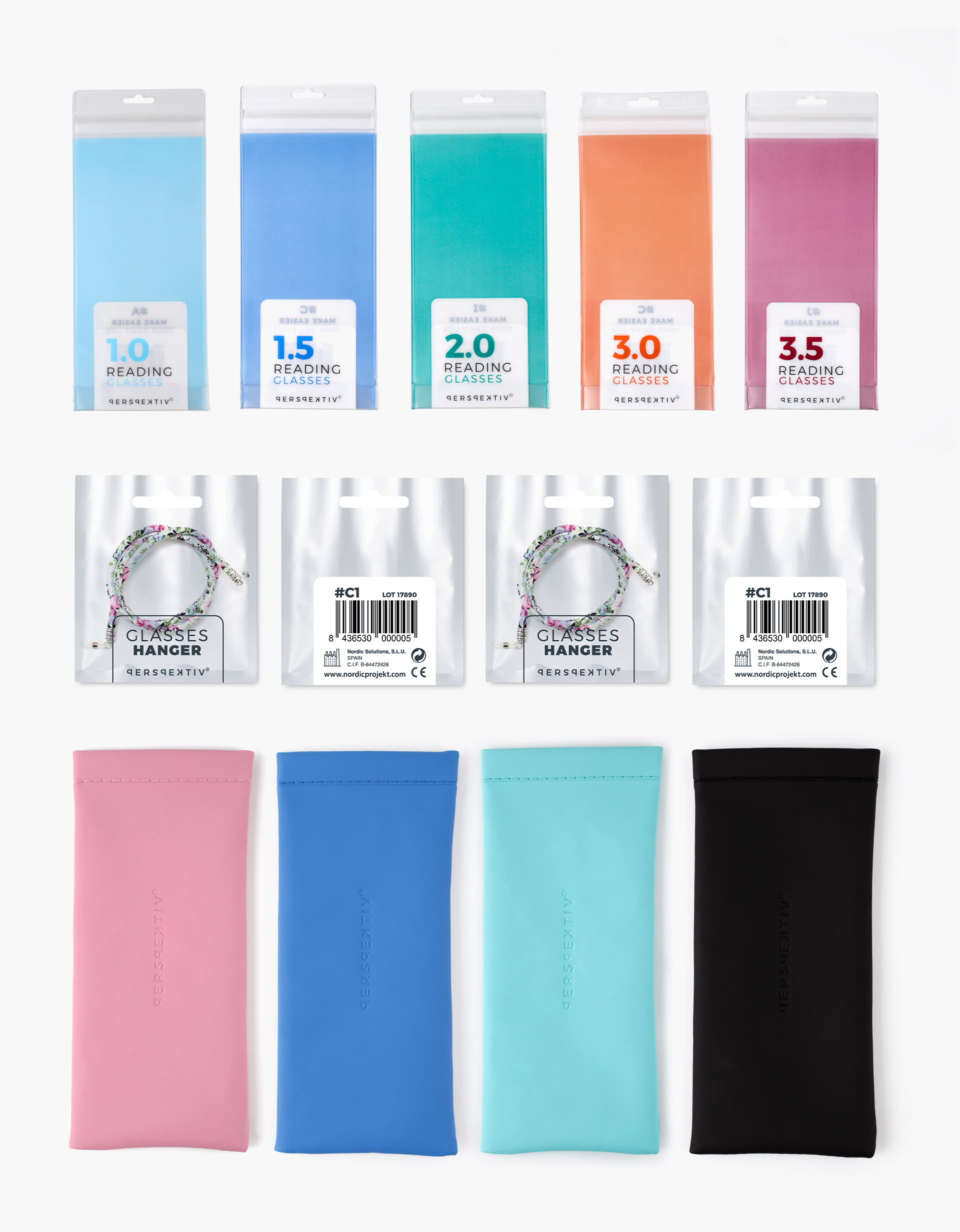 Brand design & Packaging for Perspektiv a brand of Reading glasses and optical accessories.